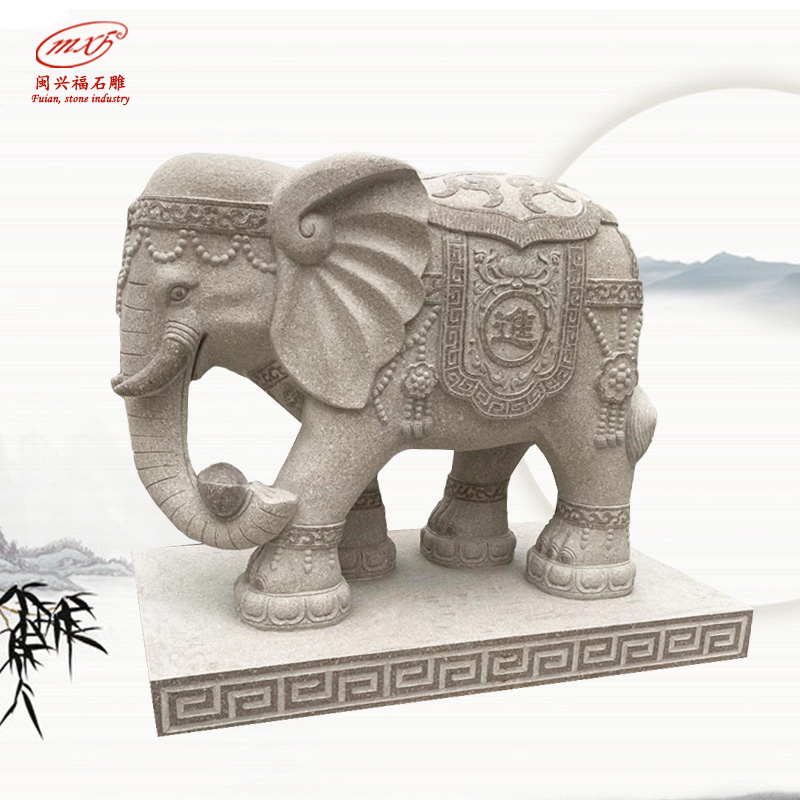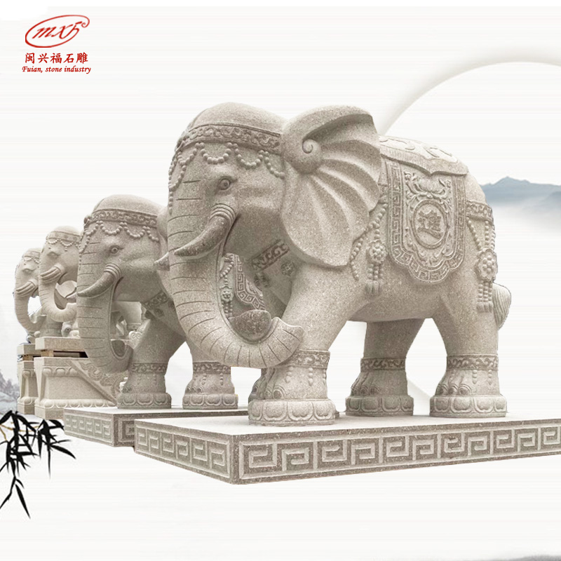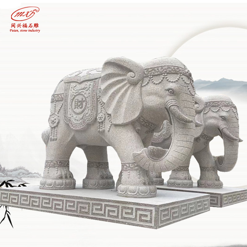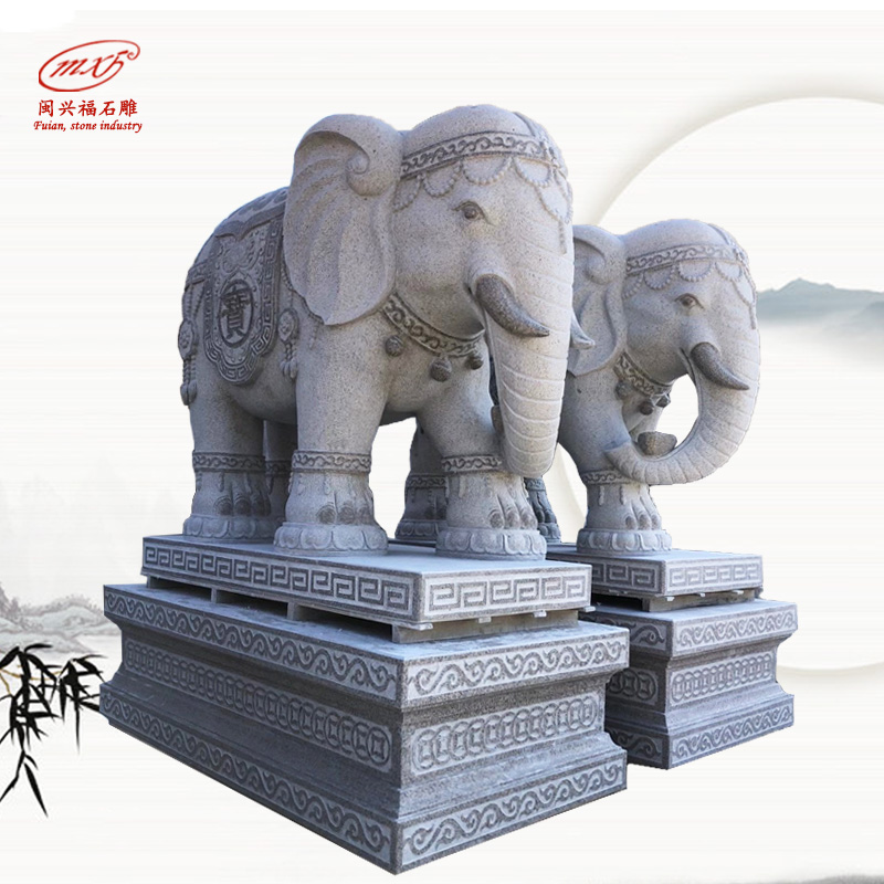 福建工艺厂家石雕大象一对门口入口大理石石刻动物雕像石象雕塑MXFSD-DW2413