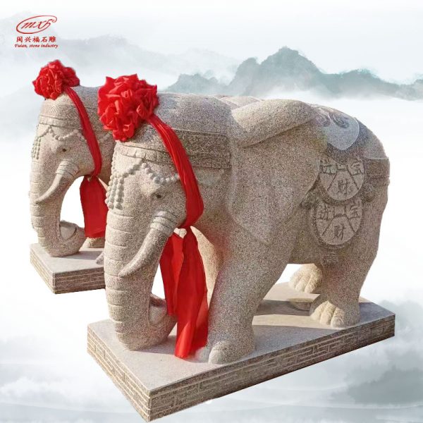 花岗岩石象芝麻红动物大象石雕 酒店别墅门口庭院动物雕塑摆件MXFSD-DW2435