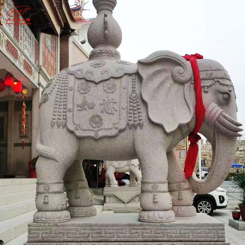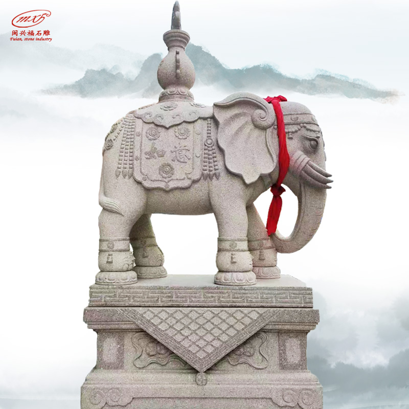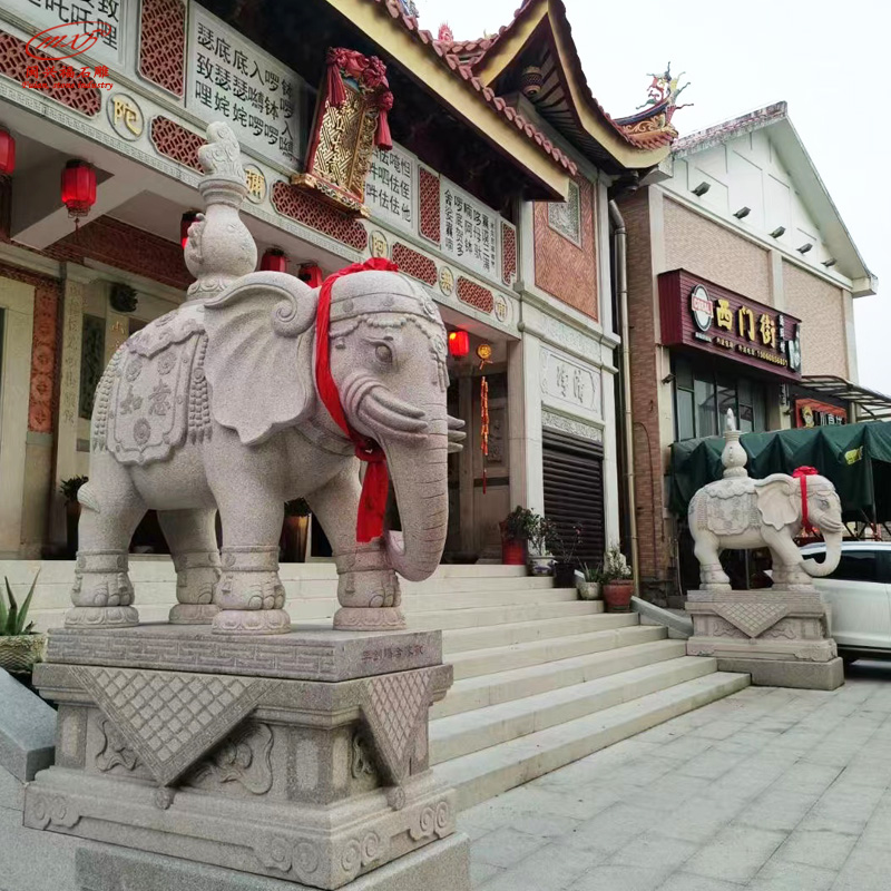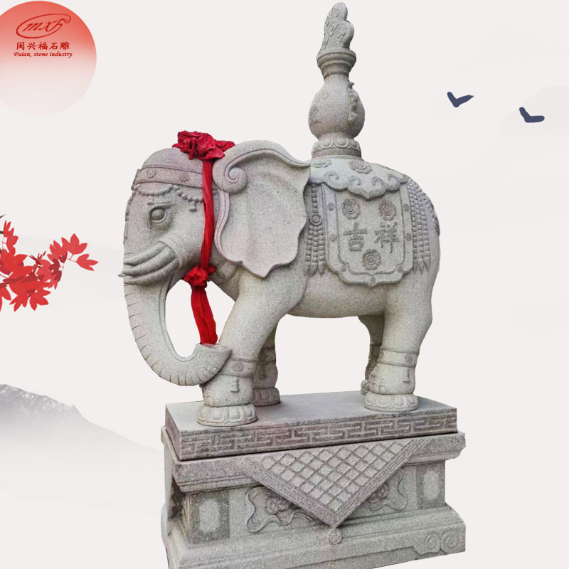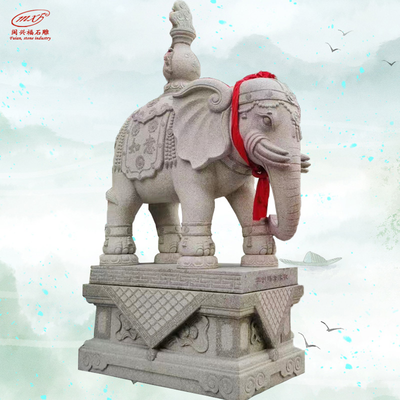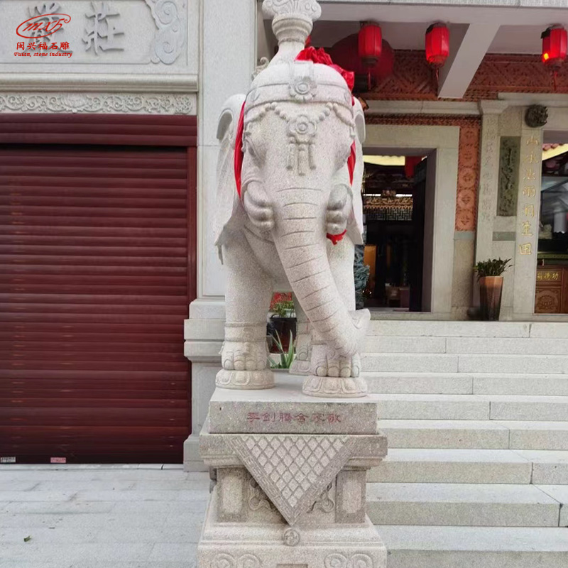 闽兴福石雕大象雕塑花岗岩芝麻白大象宗祠寺庙景区公园动物门口摆件MXFSD-DW2476