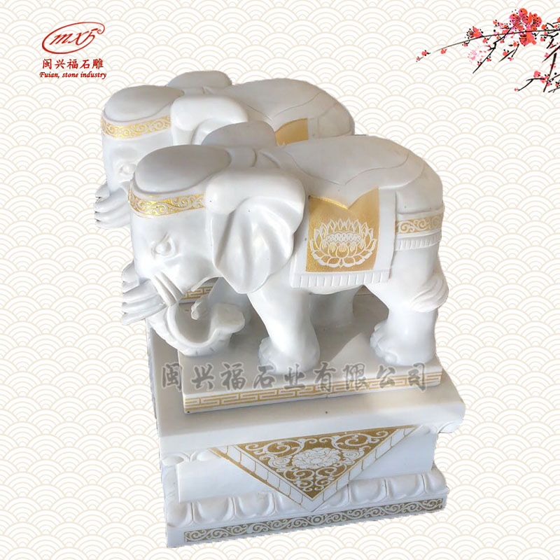 热销闽兴福石雕大象汉白玉石材雕刻 门口招财石象一对 石雕动物MXFSD-DX201