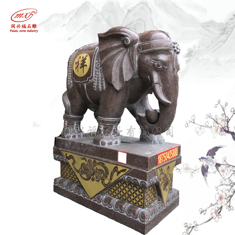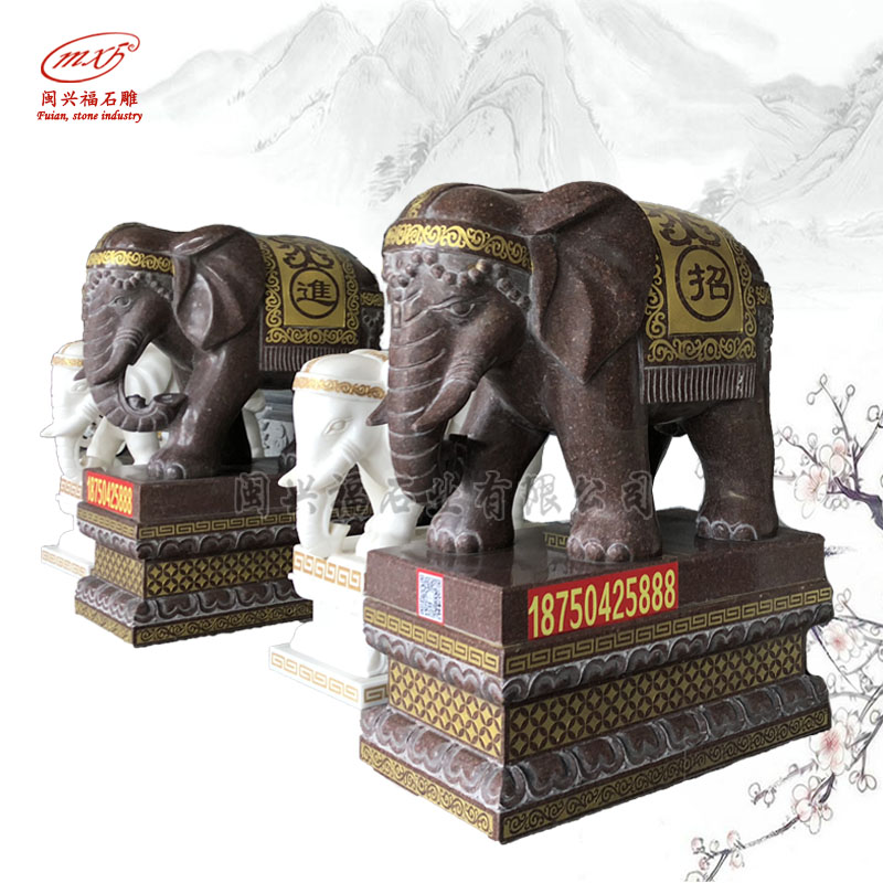 推荐闽兴福实体厂家印度红石雕大象 供应吉祥如意招财进宝大象一对 庭院门口摆放镇宅小象MXFSD-DX206