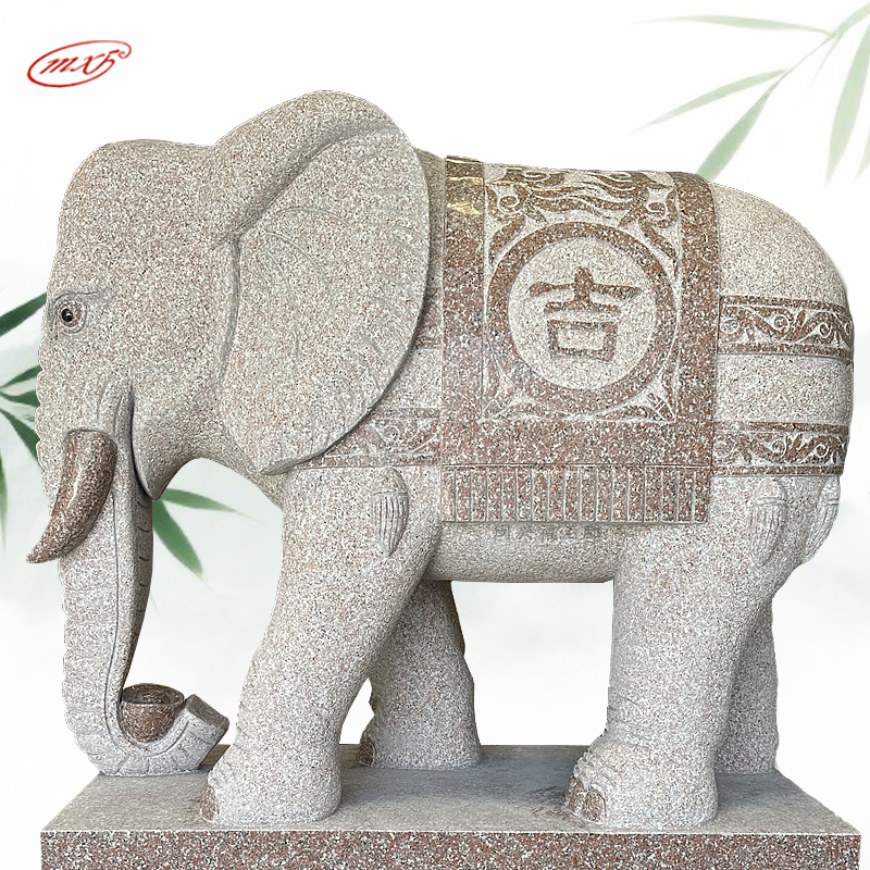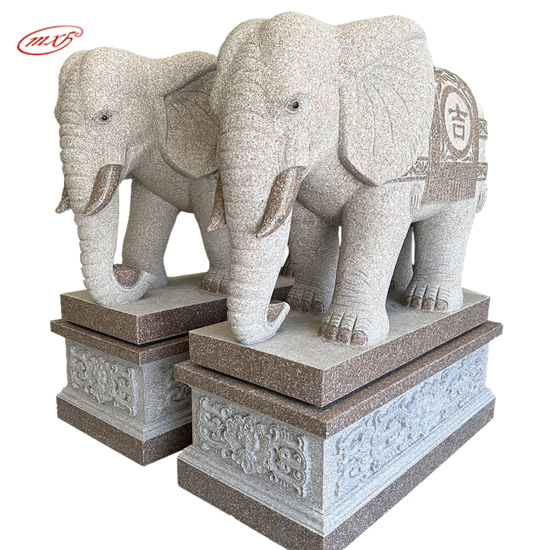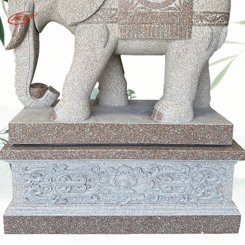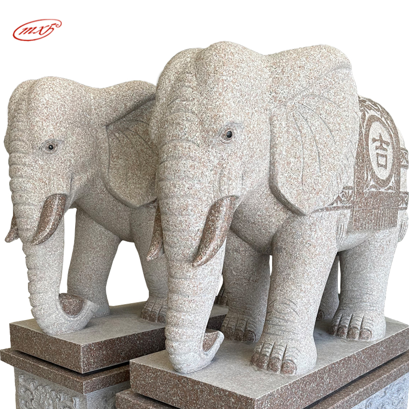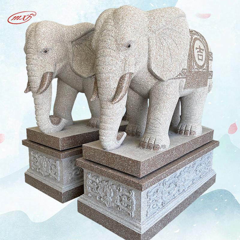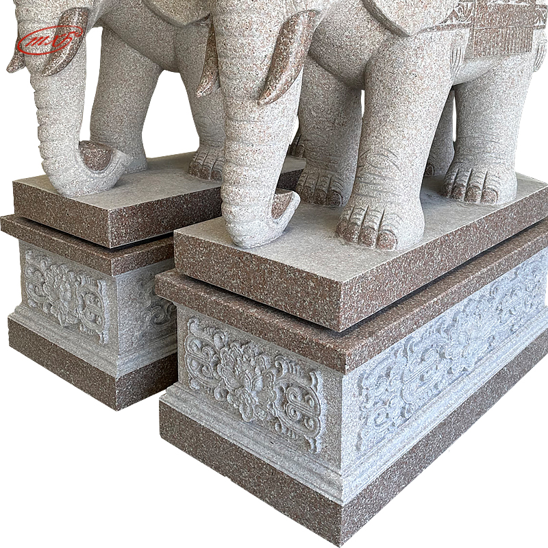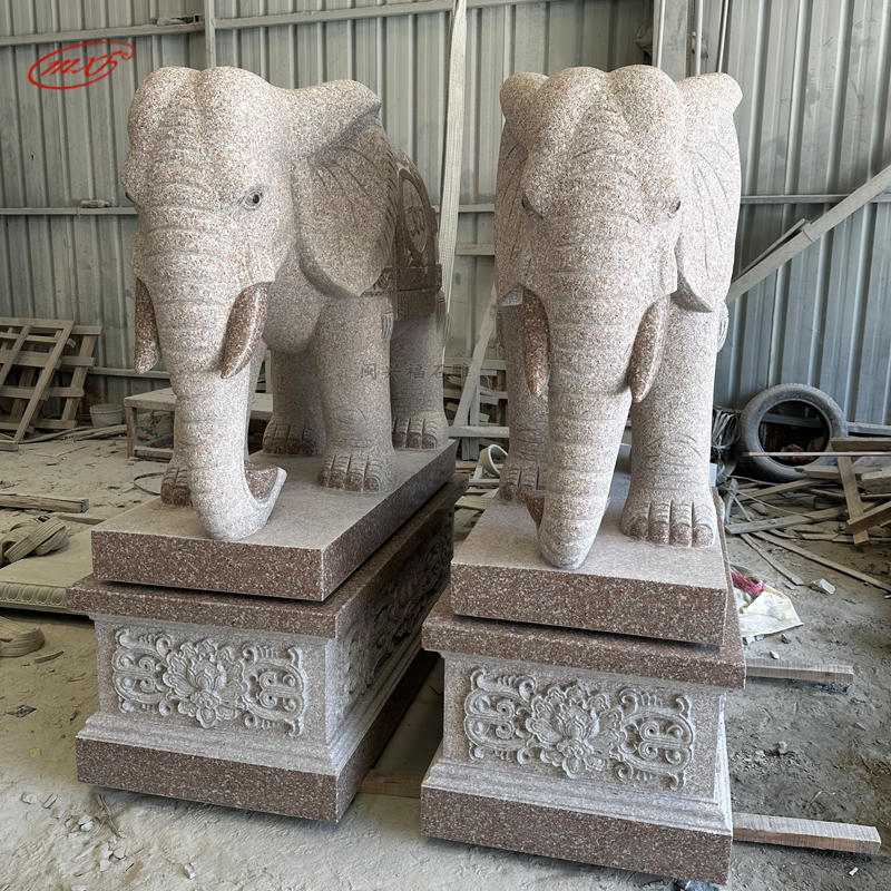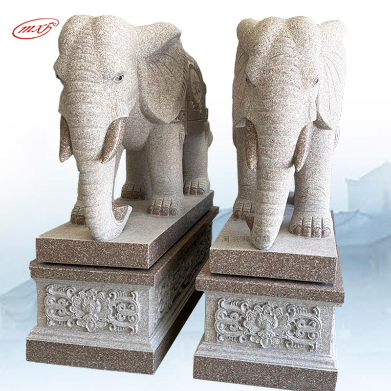 泉州花岗岩石雕大象一对晚霞红芝麻白石头象寺庙宗祠大门石象雕塑摆件MXFSD-DX309