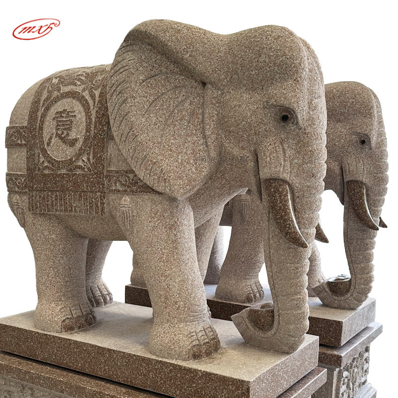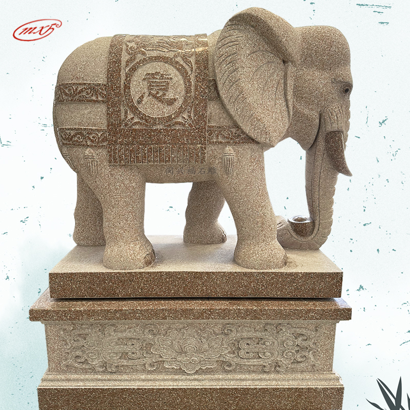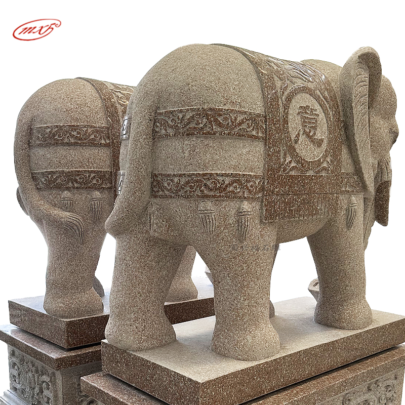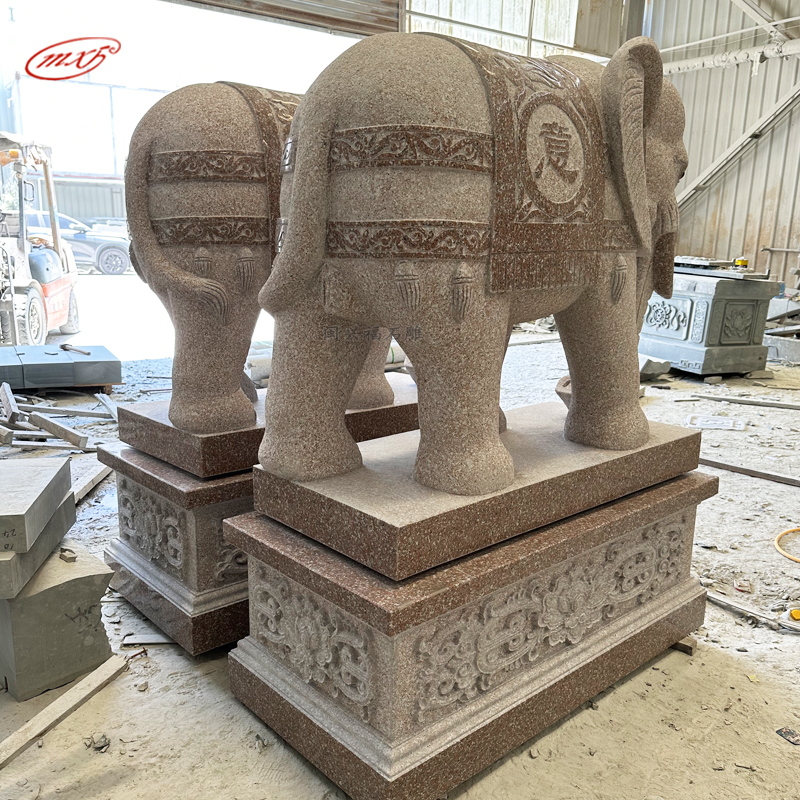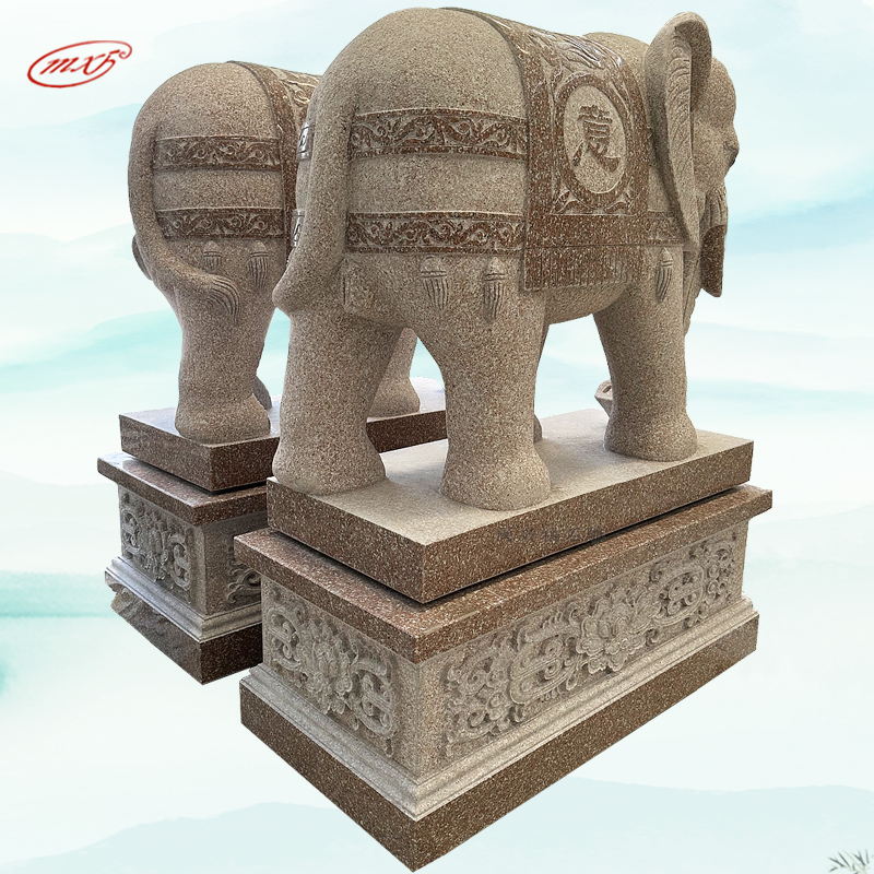 闽兴福石材厂家 按需定制 花岗岩石雕大象 晚霞红酒店寺院门口石象摆件MXFSD-DX310