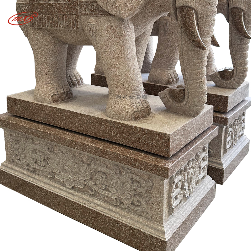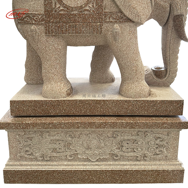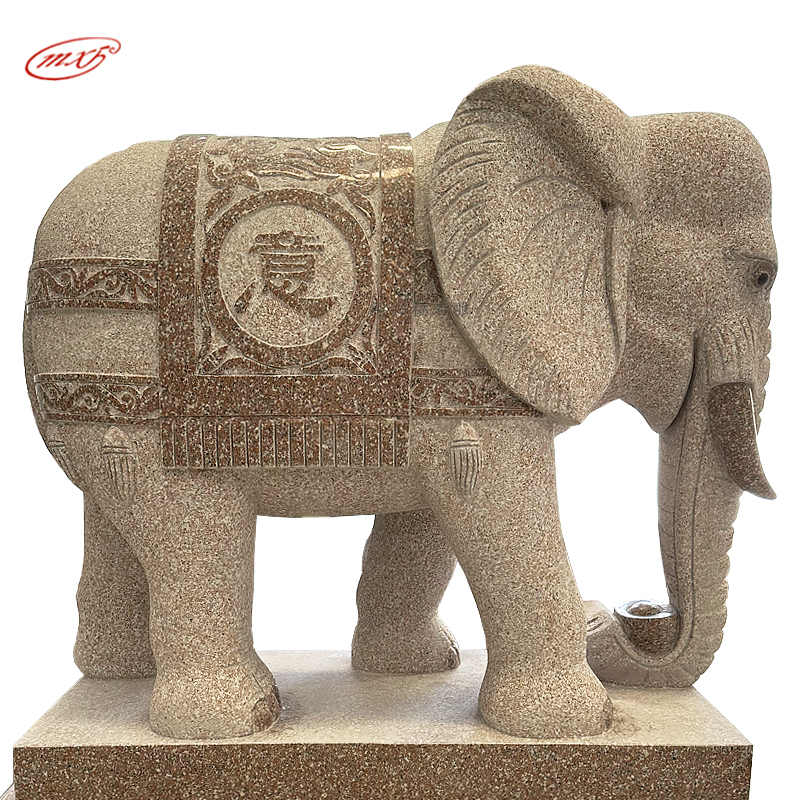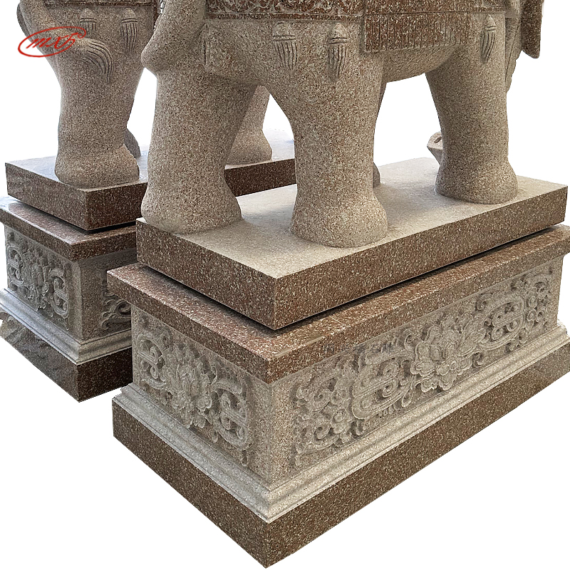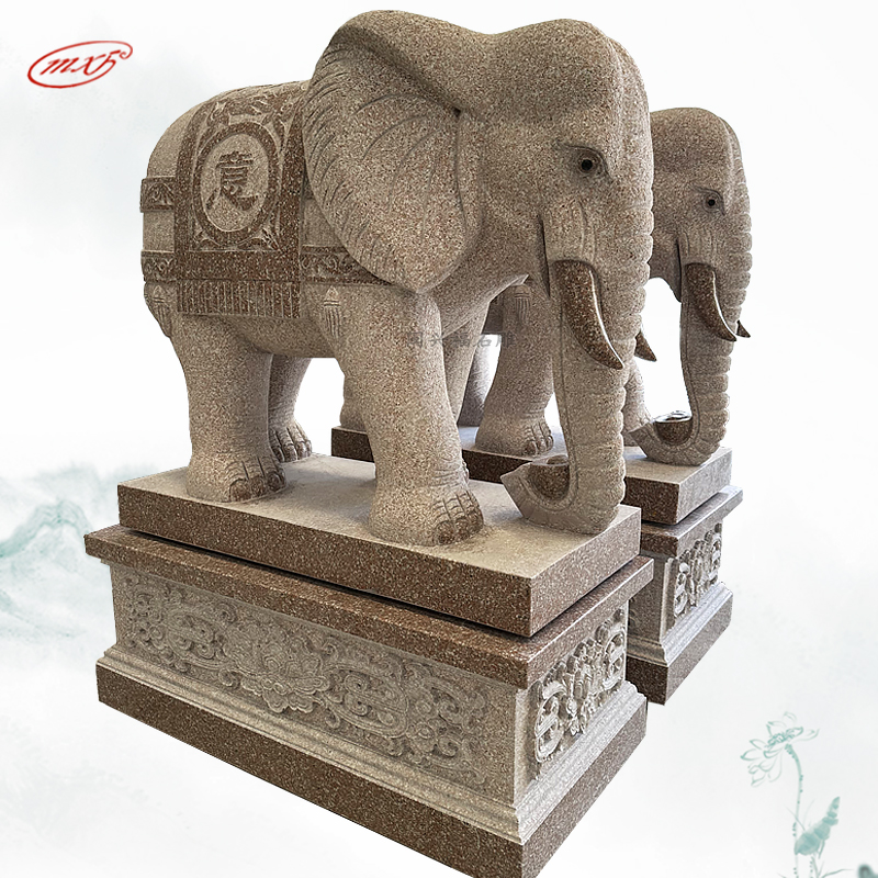 闽兴福石材厂家 按需定制 花岗岩石雕大象 晚霞红酒店寺院门口石象摆件MXFSD-DX310